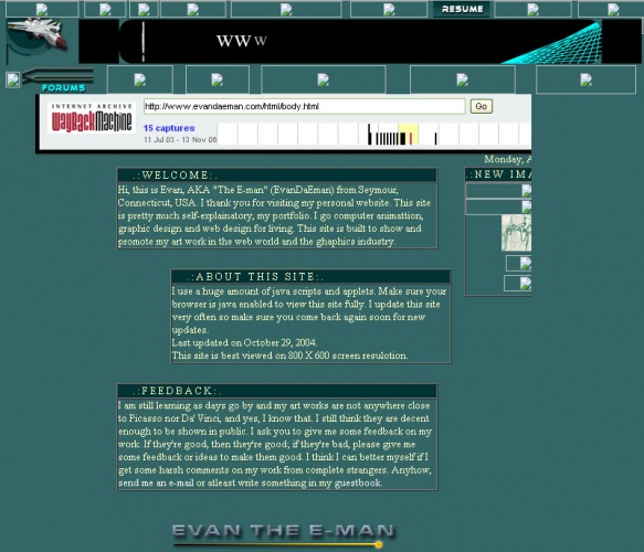 This was done pretty well for 2002. I wanted to have a site that had timely updates and stuff. But the problem was, I was manually adding the date sensitive content and databases weren't a option then for me.