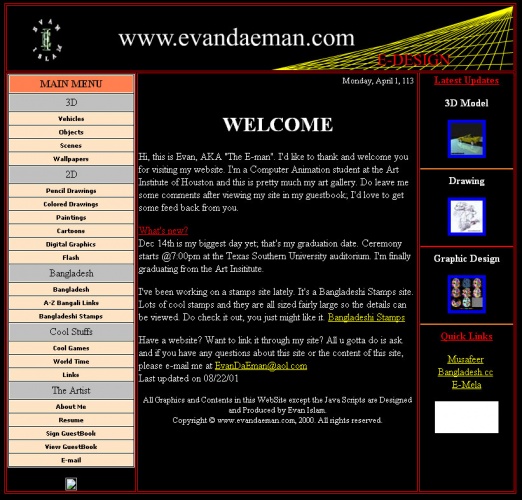 Wow, this was my first redeisgn of my site. I had learned to use tables and colors. For 2001, this had to be one of the best looking personal sites ;) I even had a cool Flash banner as the header. Flash was the newest and hottest thing around back then.